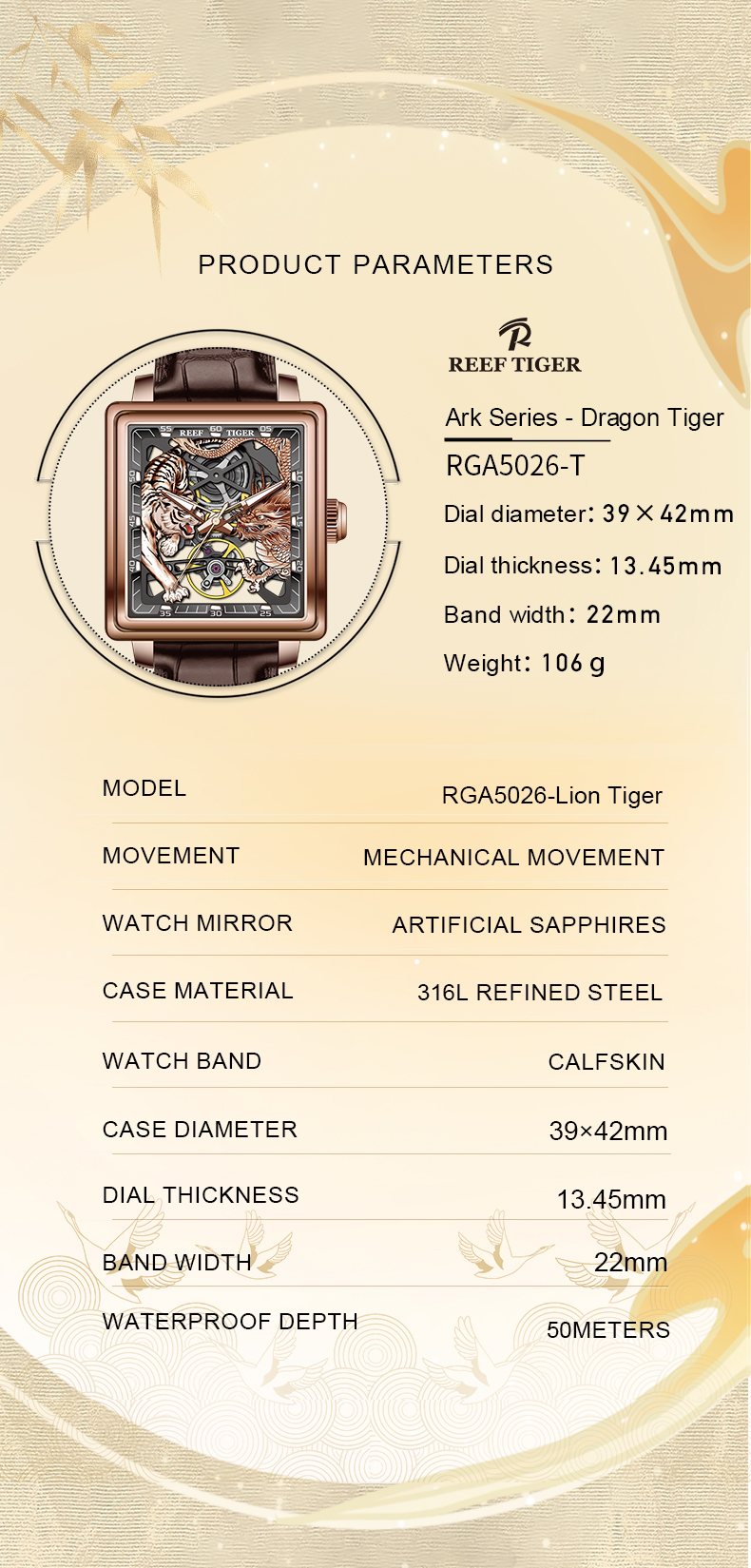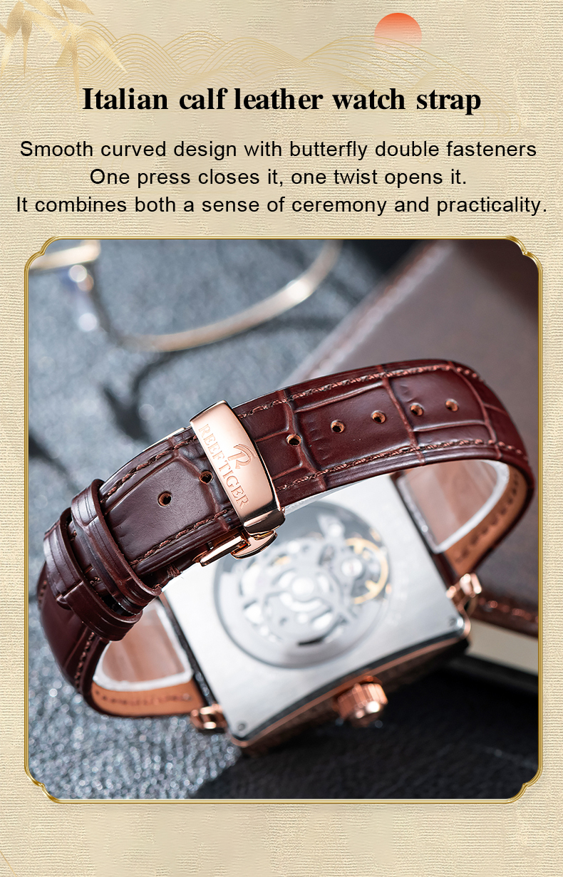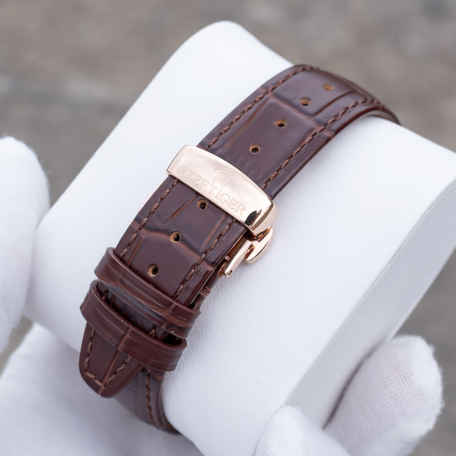 Leather Strap, Black Dial, Rose Gold Bezel,42MM RGA5206-T-PPWL