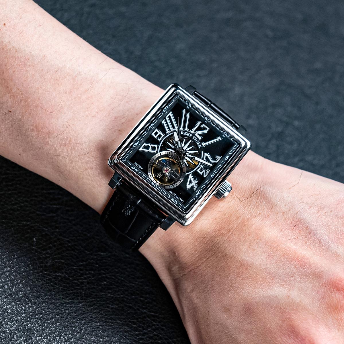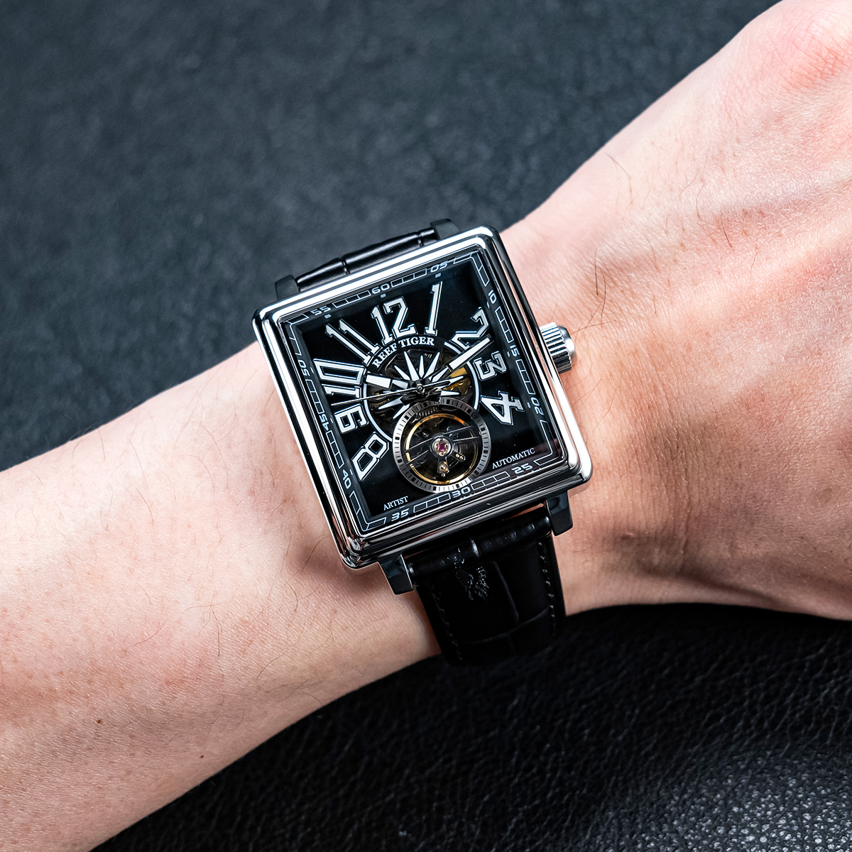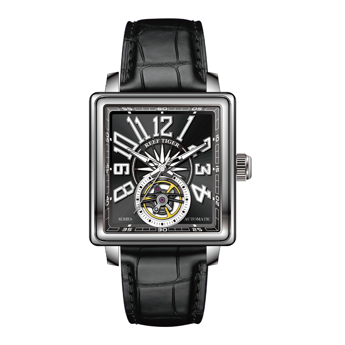 Leather Strap, Black Dial, Steel Bezel,42MM RGA5206-YBBL