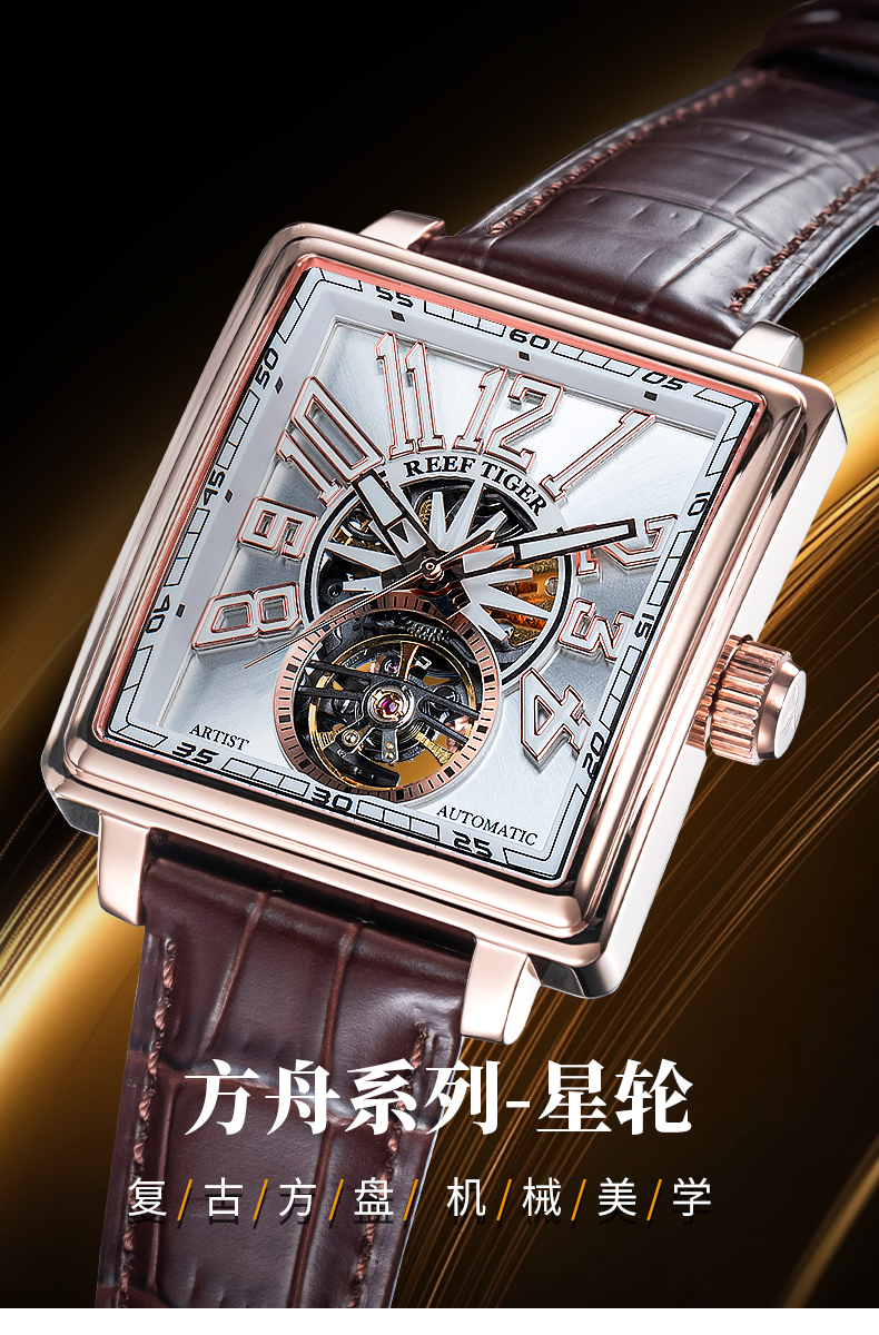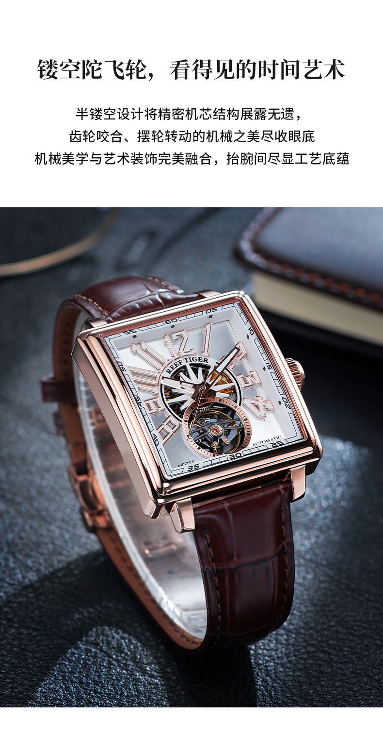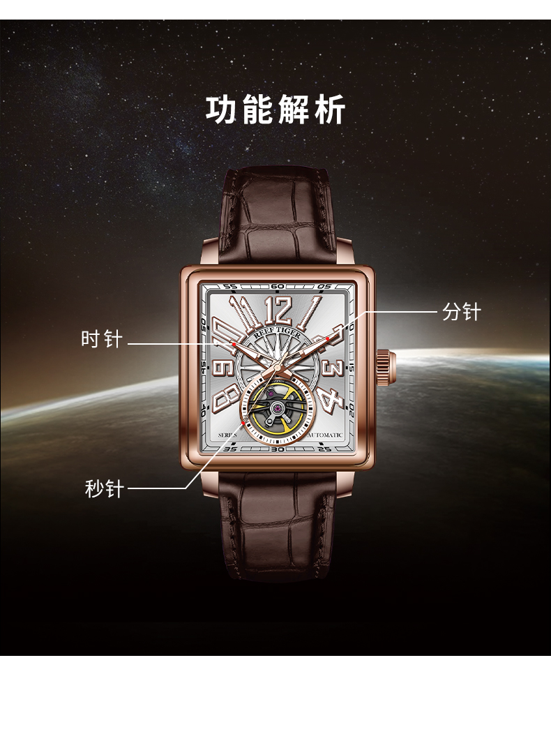 Leather Strap, Black Dial, Steel Bezel,42MM RGA5206-YBBL