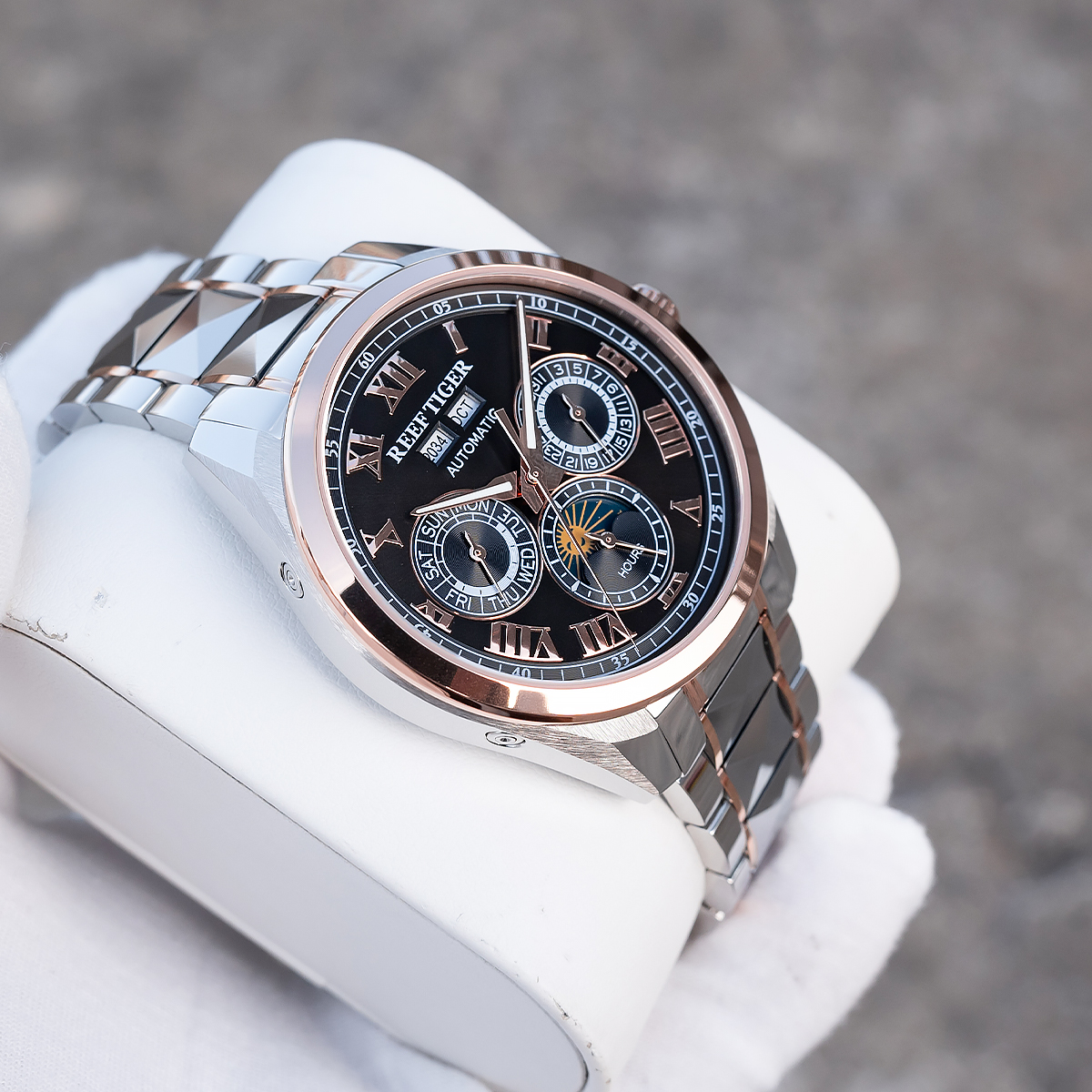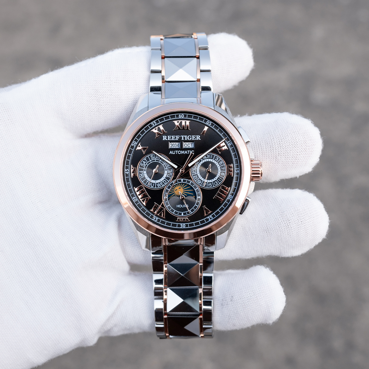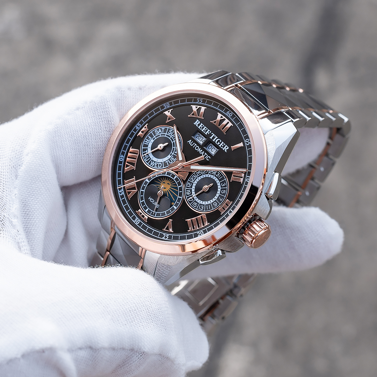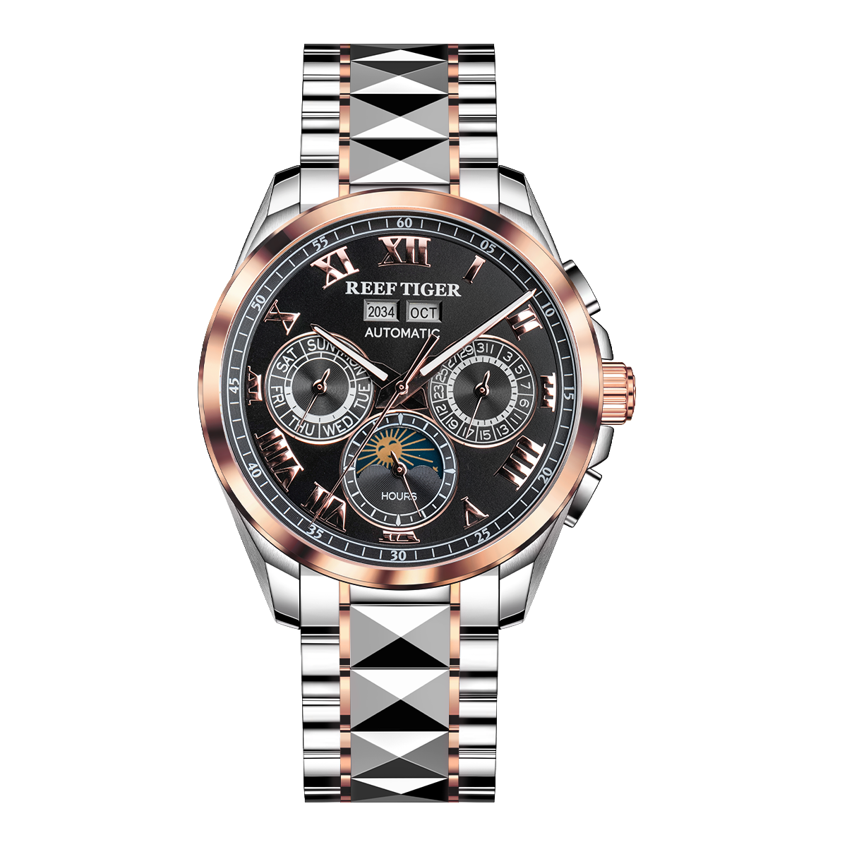 Steel Strap, Black Dial, Rose Gold Bezel,44MM RGA8235