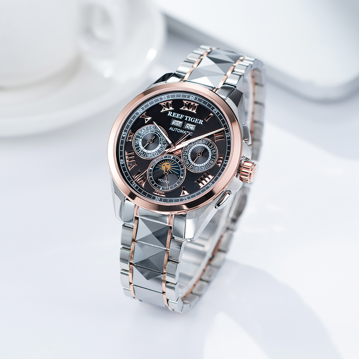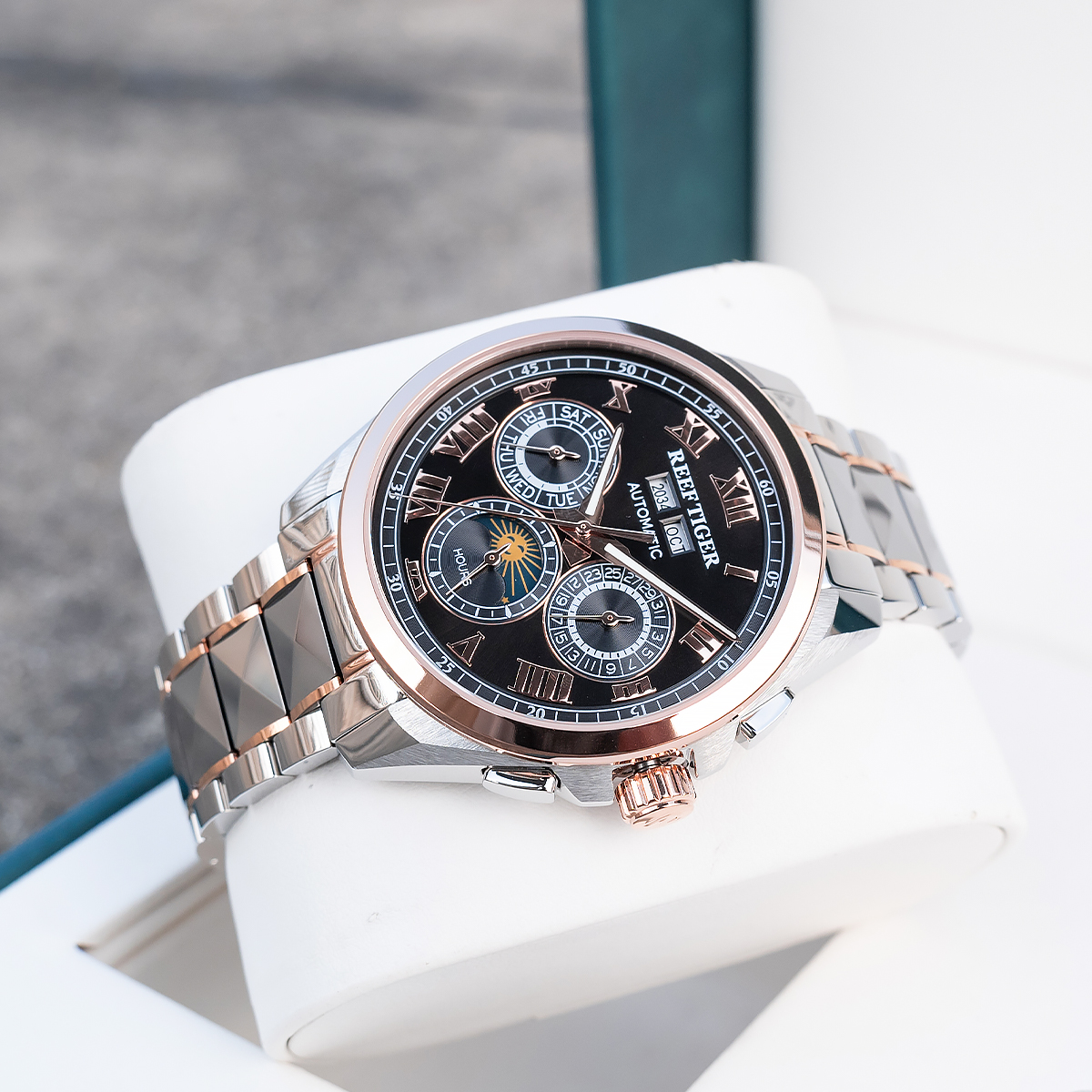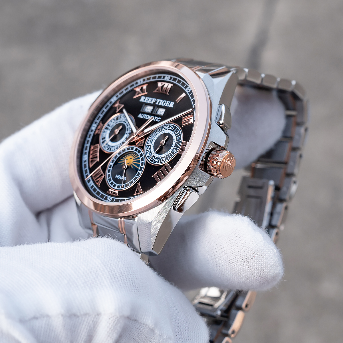 Steel Strap, Black Dial, Rose Gold Bezel,44MM RGA8235