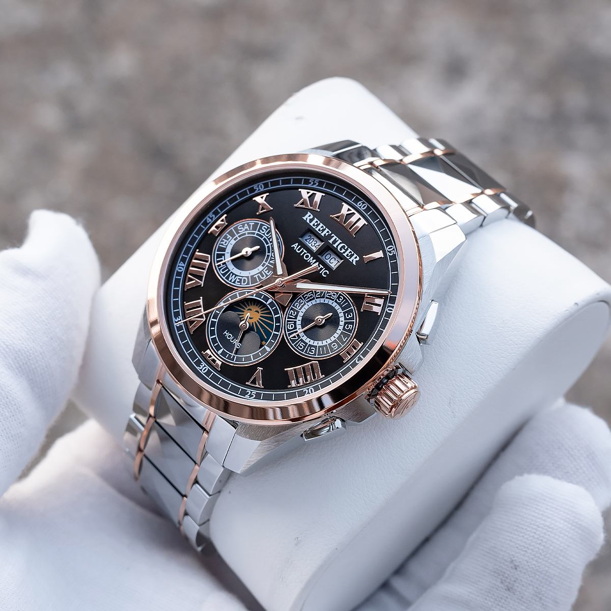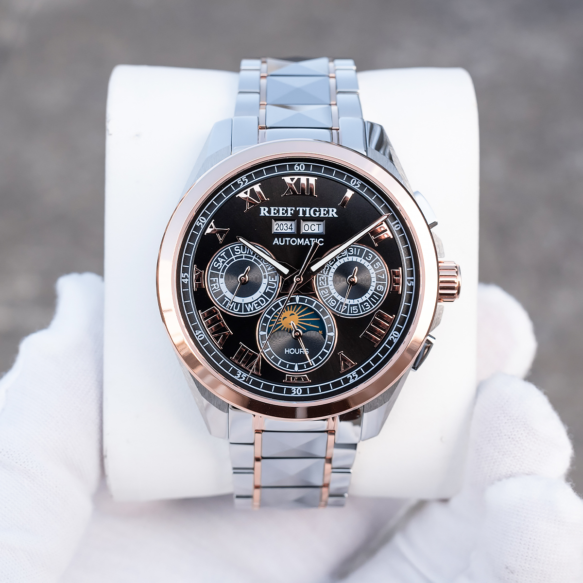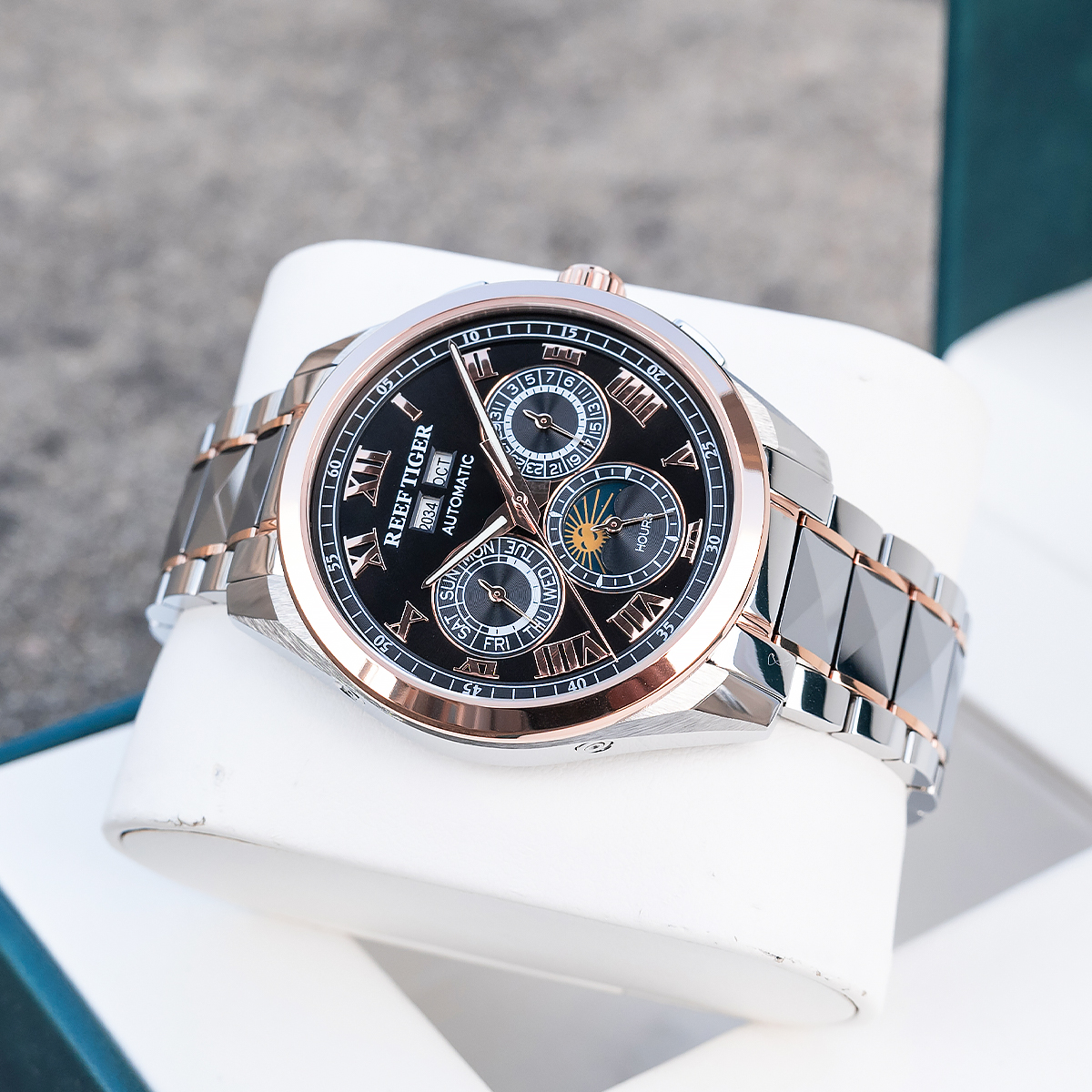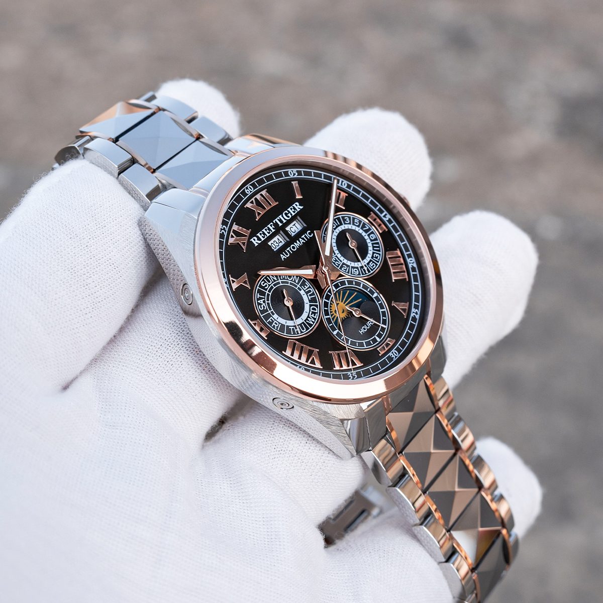 Steel Strap, Black Dial, Rose Gold Bezel,44MM RGA8235