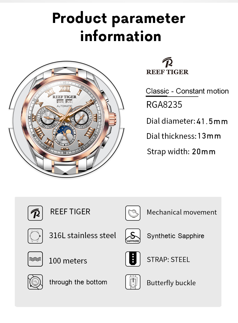 Steel Strap, White Dial, Steel Bezel,44MM RGA8235